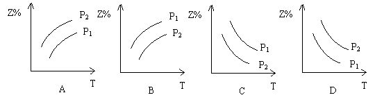 2Z(g) (正反应为放热反应),在不同温度、不同压强(P1>P2)下,达到平衡时,混和气体中Z的百分含量随温度变化的曲线应为……………………………………………………………………( )