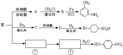 (2)图中“苯→①→②”省略了反应条件,请写出①、②物质的结构简式: