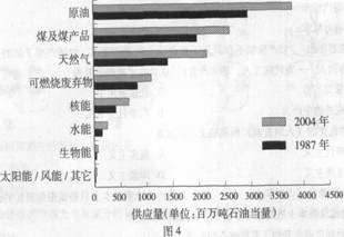 50.图4为1987年与2004年世界能源供应构成图。下列叙述不正确的是