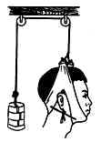 轮相连的帆布带拉着病人的颈椎,整个装置在同