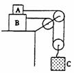 12、A、B、C三个物体通过细线和光滑的滑轮相连,处于静止状态,如图所示,C是一箱砂子,砂子和箱的重力都等于G,动滑轮的质量不计,打开箱子下端开口,使砂子均匀流出,经过时间