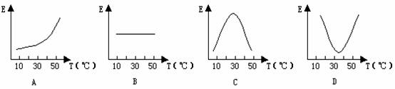 35.在实验条件下,测试某种恒温动物离体细胞的呼吸强度(E)受温度(T)变化的影响,预期结果是 ( )