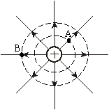 6、 如图所示的电场中两点A和B(实线为电场线,虚线为等势面)。关于A、B两点的场强E和电势