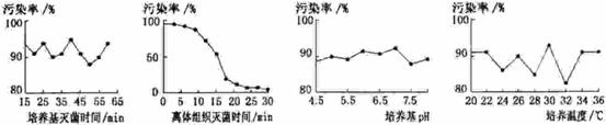 4.某组织培养实验室的愈伤组织被真菌严重污染,为查找污染原因设计了4个实验,实验条件除图示外其他均相同。下列各图表示实验结果,据图不可得出的初步结论是