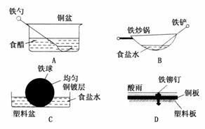 质的铁在图中的四种情况下最不易被腐蚀的是 ( )