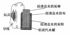 9.(2009·济南市高三模拟考试)利用生活中常见的材料可以进行很多科学实验,甚至制作出一些有实际应用价值的装置,下图就是一个用废旧材料制作的可用于驱动玩具的电池的示意图。该电池工作时,有关说法正确的是 ( )