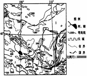 ⑵、图中D平原是我国西北地区著名的粮食产区,素有“塞上江南”美誉,请你试分析发展农业生产的有利自然和社会经济条件。(8分)