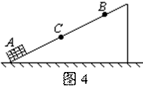 4、如图4所示,物体以4m/s的初速度自斜面底端A点滑上光滑斜面,途径斜面中点C,到达最高点B。已知在A、C点速度vA