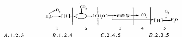 下图是光合作用和呼吸作用的关系简图,其中只发生在生产者体内、可发生在各种细胞内,为生命活动提供能量最多的过程依次是: