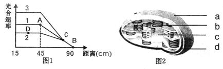 I、某小组用依乐藻进行光合作用的实验,他们将一枝依乐藻浸在加有适宜培养液的大试管中(室温20℃),可观察到光下枝条放出气泡。他们以太阳灯作为光源,移动太阳灯使之与大试管的距离不同,结果如图1中曲线1,请回答: