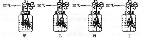 II、取四株大小与长势一致的棉花幼苗,分别培养在盛有等量完全培养液的培养瓶中,并通入空气,装置如下图。