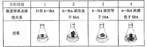 (2)下表为6一BA和IBA这两种植物激素的浓度关系对植物组织培养的调控作用的实验结果。请分析回答: