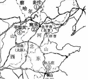 16.下图中数字标明的地点,都是抗日战争期间著名战役的发生地,其中能为八路军战史提供实地的资料的是