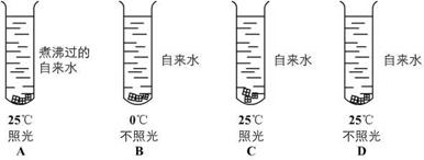 27.生长旺盛的叶片,剪成5毫米见方的小块,抽去叶内气体;做下列处理(见图及图注),这四个处理中,沉入底部的叶片小块最先浮起的是