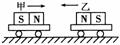 2.)如图所示,两条形磁铁各固定在甲、乙两车上,它们能在水平面上无摩擦地运动,甲车和磁铁的总质量为1 kg,乙车和磁铁的总质量为0.5 kg,两磁铁N极相对,推动一下使两车在同一直线上相向而行,某时刻甲车的速度为2 m/s,乙车的速度为3 m/s,可以看到它们还未碰上便分开了.下列说法正确的是 )