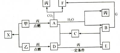 22.(10分)甲、乙、丙为常见单质,乙、丙两元素在周期表中位于同一主族。x、 A、B、C、D、E、F、G均为常见的化合物,其中A和X的摩尔质量相同,G的焰色反应为黄色。在一定条件下,各物质相互转化关系如下图: