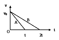 A、B两物体的质量之比mA:mB=2:1,它们以相同的初速度v0在水平面上做匀减速直线运动,直到停止,其速度图象如图所示。那么,A、B两物体所受
