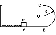 (14分)如图所示,光滑水平面AB与竖直面内的半圆形导轨在B点相接,导轨半径为R,一个质量为m的物体将弹簧压缩至A点后由静止释放,在弹力作用下物体获得某一向右速度后脱离弹簧,当它经过B点进入导轨瞬间对导轨的压力为其重力的7倍,之后向上运动恰能完成半个圆周运动到达C点.试求: