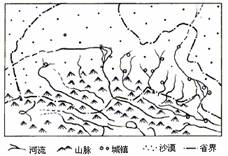下图所示地区是我国荒漠化扩大较快的地区之一。读图完成2-3题。
