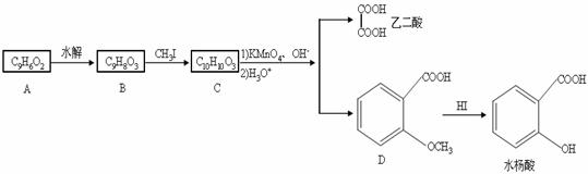 23.(10分)香豆素是广泛存在于植物中的一类芳香族化合物,大多具有光敏性,有的还具有抗菌和消炎作用。它的核心结构是芳香内酯A,其分子式为C9H6O2,该芳香内酯A经下面方框图所示步骤转变为水杨酸和乙二酸。