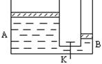 5、如图,容器A、B各有一个可自由移动的轻活塞,活塞下面是水,上面是大气,大气压恒定.A、B的底部由带有阀门K的管道相连.整个装置与外界绝热.最初A中水面比B中的高,打开K使A中的水逐渐向B中流,最后达到平衡,在这个过程中 [ ]