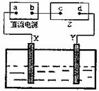 下图中,Z为浸透饱和食盐水和酚酞试液的滤纸,水槽中盛有足量CuSO4溶液,X、Y为石墨电极。接通电路后,发现Z上的d点显红色。下列说法正确的是 ( b