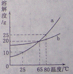 (2010.浙江杭州)26.(3分)右图为a、b两物质的溶解度曲线,据图回答: