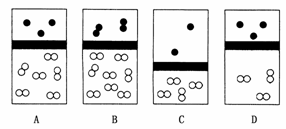 表氢原子,黑球代表氦原子,方框代表容器,容器中间有一个可以上下滑动的隔板(其质量忽略不计)。其中能表示等质量的氢气与氦