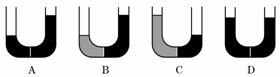 24.一U形管中装有两种不同的溶液R和S,并为一半透性膜(X)隔开,R的溶质可通过X。与 S相比,R溶液浓度较低。右图中阴影的深浅即代表浓度高低。当U形 管内达到平衡时,溶液表面与浓度的关系是 ( )
