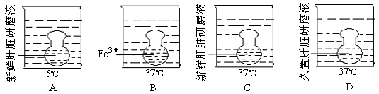 在小型圆底烧瓶内盛等量的H2O2,并向瓶中迅速加入等量的下列图示中的物质,烧瓶口紧包着一个小气球,使烧瓶沉于烧杯底部的同一位置。下列装置中,沉入底部的烧瓶最先浮起的是