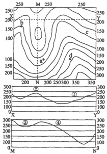 读某地地形剖面图以及气温、降水量随地形分布示意图,