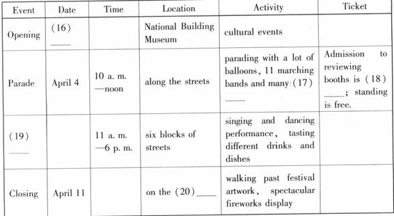 听下面一段独白,请根据题目要求,从所听到的内容中获取必要的信息,填入答题卡标号为16-20的空格中。听录音前,你将有10秒钟的阅题时间,录音读两遍。你将有60秒钟的作答时间。