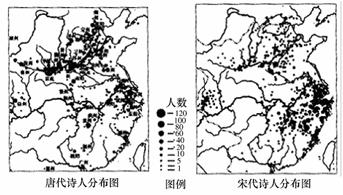 13.通过下列唐宋诗人分布图,我们可以看到从唐至宋 ( )