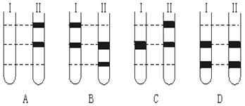 20.在氮源为14N的培养基上生长的大肠杆菌,其中DNA分子均为14N-DNA,在氮源为15N培养基上生长的大肠杆菌,其中DNA分子均为15N-DNA。若将 14N-DNA、15N-DNA以及14N、15N-DNA混在一起,用某种方法离心分离,其结果如上图所示。现将 15N-DNA转移到含14N的培养基上,再连续繁殖两代(Ⅰ和Ⅱ)后,将所得DNA采用同样的方法进行离心分离,则结果可用图下列哪一图表示
