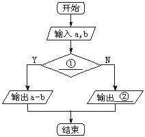 8.下面算法流程图的功能是“输入两个数,输出这两个数差的绝对值”,则①②处分别填: