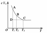 I2(aq)+I-(aq) 99QQ20 I(aq)上述平衡体系中,I的物质的量浓度c(I)与温度T的关系如图所示(曲线上的任何一点都表示平衡状态),下列说法不正确的是 ( )