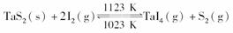 TaS2粉末装入石英管一端,抽真空后引入适量碘并封管,置于加热炉中。反应如下:
