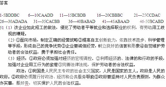 53.(18分)(1)①由于市场上生猪的供给与需求的不平衡,导致生猪价格有涨有跌,这是价值规律发生作用的具体体现。(3分)②价格变化对生产的影响:第一,调节生产;第二,提高劳动生产率;第三,生产适销对路的高质量产品。(3分)