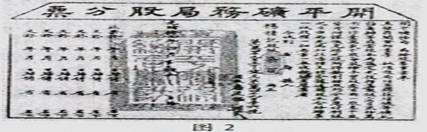 39.下图是清朝“光绪十七年”发行的(开平矿务局)股份票证。从中得到的正确信息是