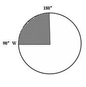 右图中外圆纬度数为n,圆为某日极昼分布的范围,中心为极点,此时非阴影部分日期为m,据此回答1-2题。