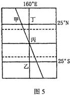 A、甲、丙日出时的地方时相等 B、乙、丁正午太阳高度角相等