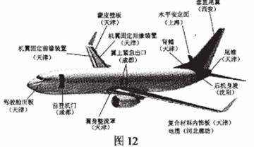 图12是美国新一代波音737飞机在中国的零部件生产地说明图。读图回答23-24题