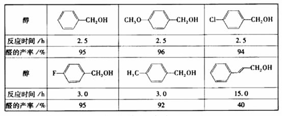 (2)醇在催化作用下氧化成醛的反应是绿色化学的研究内容之一。某科研小组研究了把催化剂在氧气气氛中对一系列醇氧化成醛反应的催化效果,反应条件为:K2CO3、363K、甲苯(溶剂)。实验结果如下: