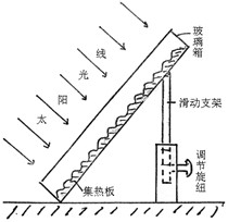 北京(40°N)某校-学生在研究性学习活动中,对太阳能热水器进行了重新设计(如图),把热水器装在一个大玻璃箱中,并将支架改造成活动方式。据此完成13-16题。
