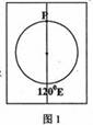 图1中的圆圈为极地附近一纬线圈,该纬线圈内出现了极昼现象。读图1, 回答1-2题。
