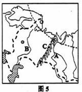 (3)图中A、B两条河流补给水源主要是什么?A、B两河主要特征有哪些不同?(8分)