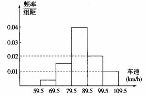 16.在某路段检测点,对200辆汽车的车速进行检测,检测结果表示为如下图所示的频率分布直方图,则车速不小于90km/h的汽车约有____________辆.