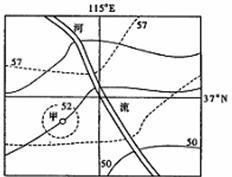 下图表示我国华北平原,图中实线是地形等高线,虚线是潜水面等高线,等高距均为5米,甲处为一口水井。读图回答11-13题。