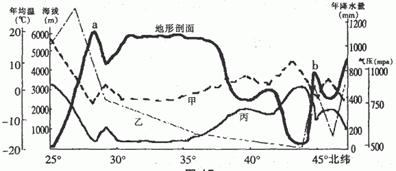 (1)甲、乙、丙曲线中, 为年均温曲线。