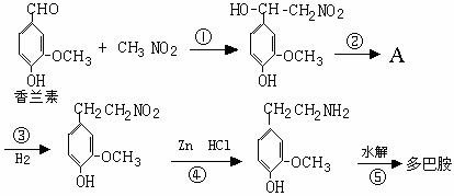 。 (4)多巴胺可由香兰素与硝基甲烷缩合,再经锌汞齐还原水解而得。合成过程表示如下: